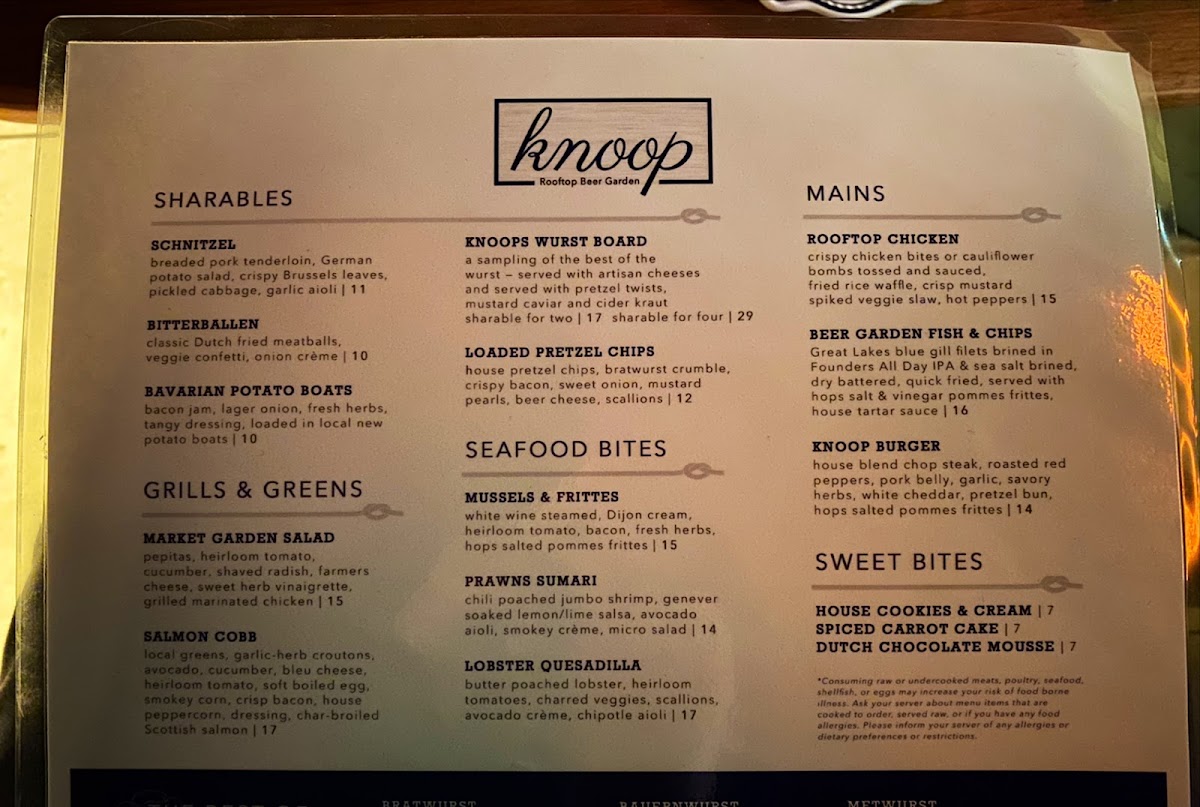Renowned for its exceptional drink selection, Knoop impresses guests with creative cocktails and an impressive wine list. Customers rave about the Old Fashioned and the variety of drinks, perfect for groups or a romantic evening. The food menu is equally enticing, featuring standout dishes like flaky cod paired with aioli and melt-in-your-mouth steak. For a unique experience, indulge in the Wurst Board or delightful pretzels that blend culinary creativity with traditional flavors.